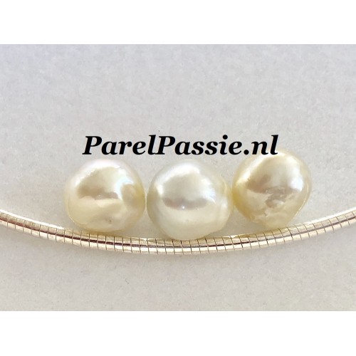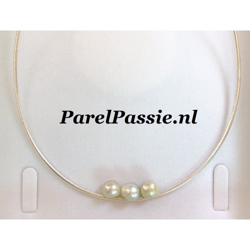 Zuidzee parels 3 zoutwater 9-11mm zilveren collier 50cm of korter y