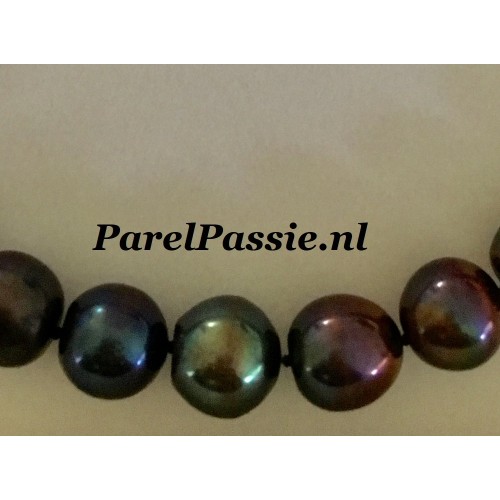 Verkocht Parelketting * zwart pauw kleurige grote parels 11mm -14mm zoetwaterparels zilveren magneetslot